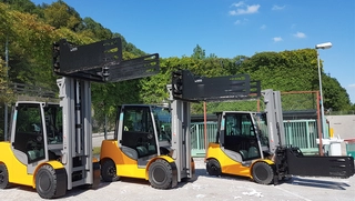 Die sichtoptimiert konstruierten Anbaugeräte der Baureihe T413 werden vorrangig für den innerbetrieblichen, nicht-palettierten Transport von Ballen aus Papier, Altpapier, Tabak und Textilien oder auch Kisten und Behältern eingesetzt. Mit besonders geformten Klammerarmen können auch Zellulose, Wolle und Big-Bags bewegt werden.