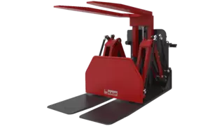 Die Paletten-Wendeklammer mit Abschieber T451WA von KAUP kommt dort zum Einsatz, wo das Ladegut von einer hochwertigen Produktionspalette auf eine preiswertere Transportpalette oder direkt auf die Ladepritsche des LKW oder Waggon umgeladen wird. Dafür muss die palettierte Ware mit den Gabeln aufgenommen, geklammert und um 180° gedreht werden. Beim Öffnen der Klammer liegt das Transportgut auf den beiden Tragplatten und wird von diesen hydraulisch - mit Hilfe eines Abschiebeschildes - auf die Transportpalette oder die Ladepritsche direkt abgeschoben.