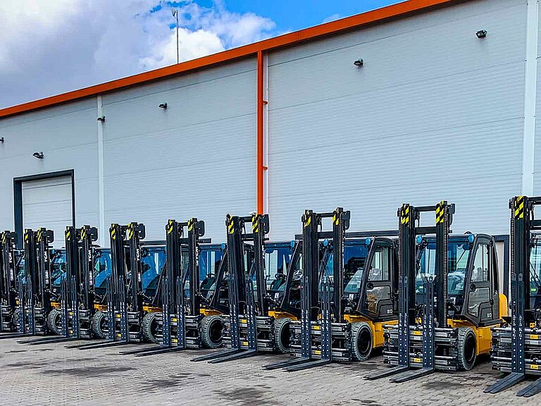 Coca - Cola HBC Hungary operates the largest bottling plant for soft drinks in Hungary in Dunaharaszti, a suburb of Budapest. The beverage company has entrusted KAUP's customer, Cola Trans Kft, with the internal logistics. As a logistics service provider, Cola Trans Kft. manages a storage area of 30,000 m2 for Coca-Cola. This corresponds to about four football fields. Every year, 2,500,000 pallets are moved there. The high workload not only demands forklift trucks, but also the attachments used. Cola Trans Kft. therefore regularly renews its fleet at the world's largest beverage producer and has opted for 20 KAUP 2T429C Double Pallet Handlers.